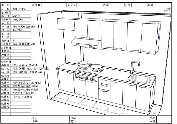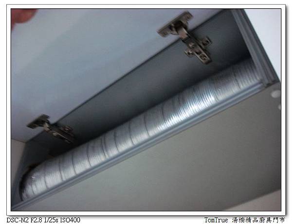 樑柱深度和排油煙管;兩者讓左側上櫥櫃空間變小變窄。考量實用性不高,規劃以成本實惠的空櫃隱藏排油煙管,其他留白處未來可增設層板架運用之~
